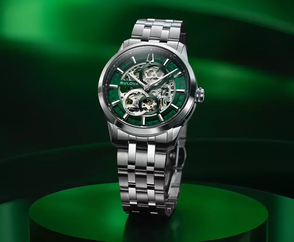 Descripcion:Descubra la ingeniería relojera con el reloj automático Bulova Sutton para hombre.Este reloj, con una escultural caja de acero inoxidable en tono plateado, combina acabados que lo hacen destacar en cualquier muñeca. Su esfera verde abierta, con múltiples capas y un cristal de zafiro, revela el fascinante movimiento automático esqueletizado de 21 rubíes, con 42 horas de reserva de marcha. Los índices y manecillas, con relleno luminiscente, ofrecen una claridad óptima. El brazalete de acero inoxidable de múltiples eslabones completa este diseño, perfecto para realzar su estilo con un toque de sofisticación.